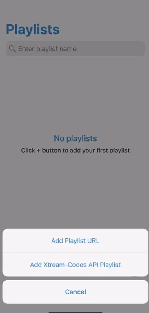 Käynnistä sovellus ja napauta plusmerkkiä alakulmassa. Valitse sitten “Lisää Xtream-Codes API -soittolista”.