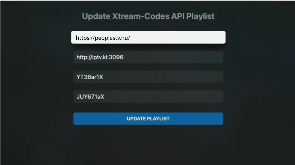 On suositeltavaa ladata IPTV-soittolistasi Xtream Codes API:n kautta (eli kƤyttƤmƤllƤ kƤyttƤjƤtunnusta, salasanaa ja portaalin URL-osoitetta, jotka saat meiltƤ oston tai ilmaisen kokeilujakson yhteydessƤ). Perfect IPTV on yksi viime vuosien ladatuimmista IPTV-sovelluksista Apple TV:lle.